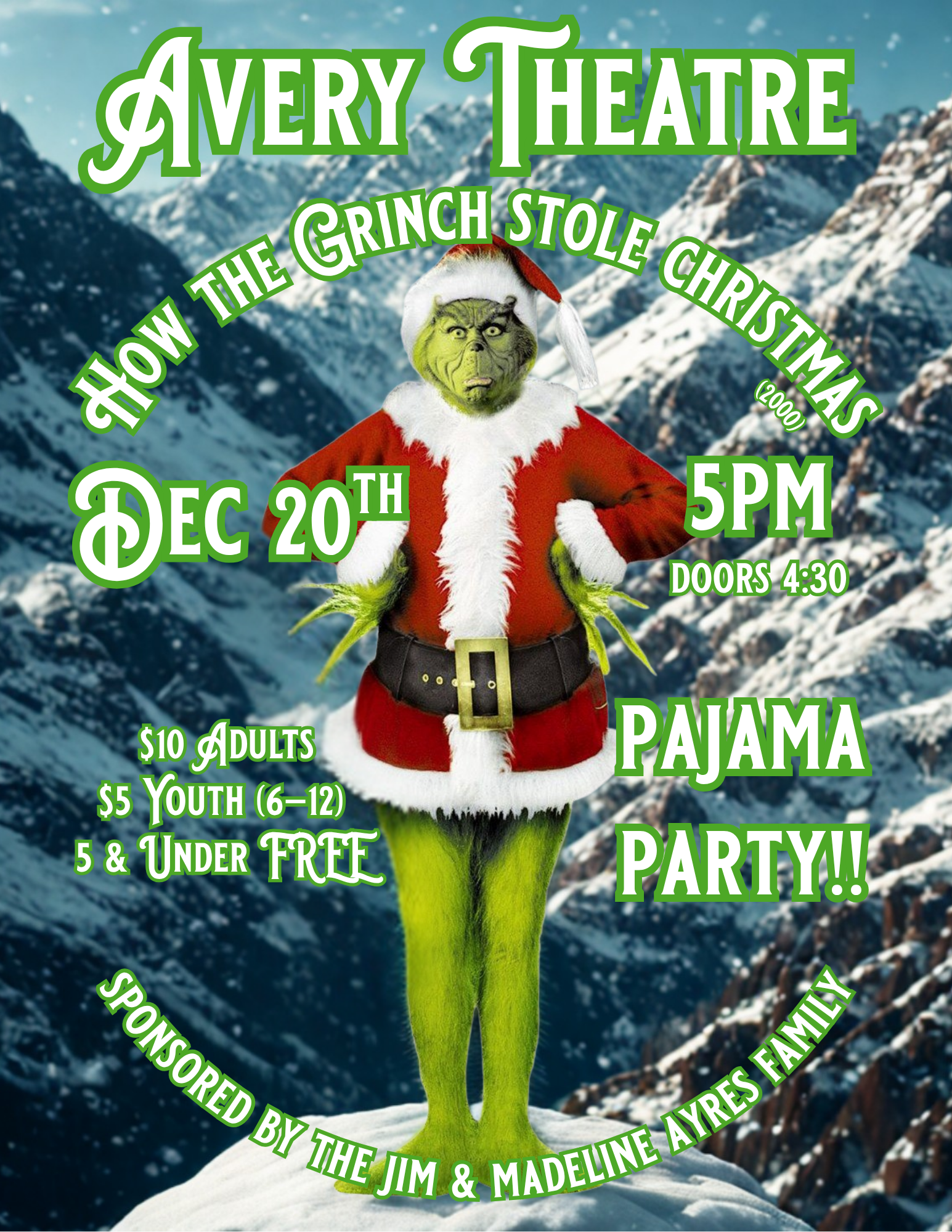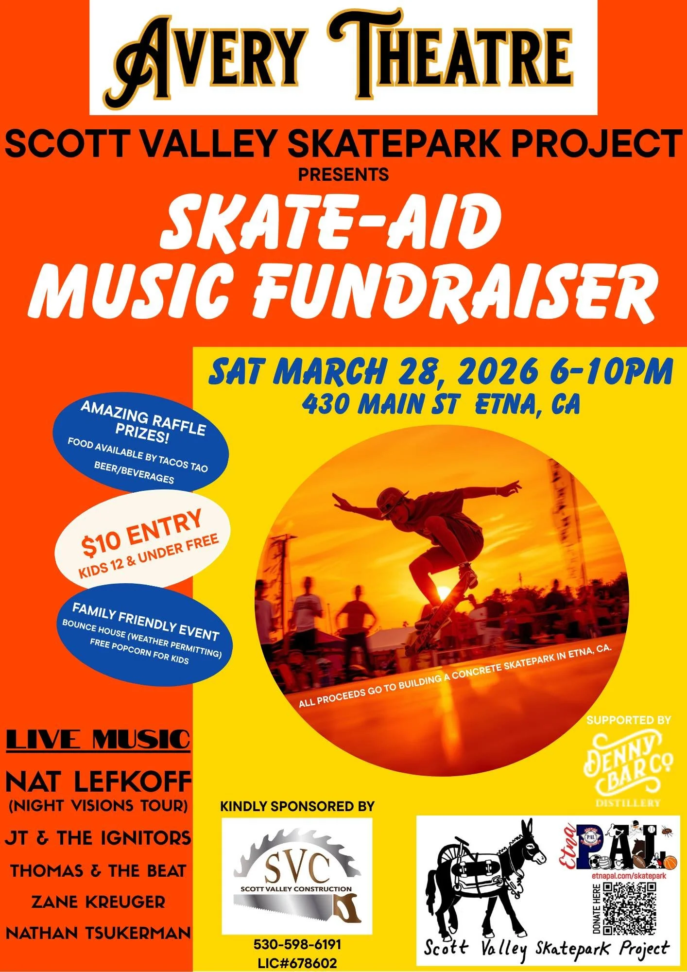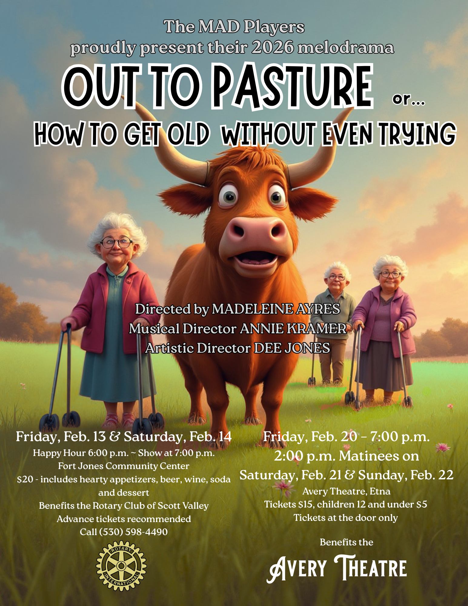 The historic Avery Theatre is a privately owned by the Scott Valley Theatre Company, a 501(c)(3) non-profit performing arts space in the City of Etna, California. Once a Gold Rush town called “Rough and Ready,” Etna is now home to a cozy population of 700-ish, tucked between Callahan and Fort Jones in a place called Scott Valley, “where the mountains meet the sky.”